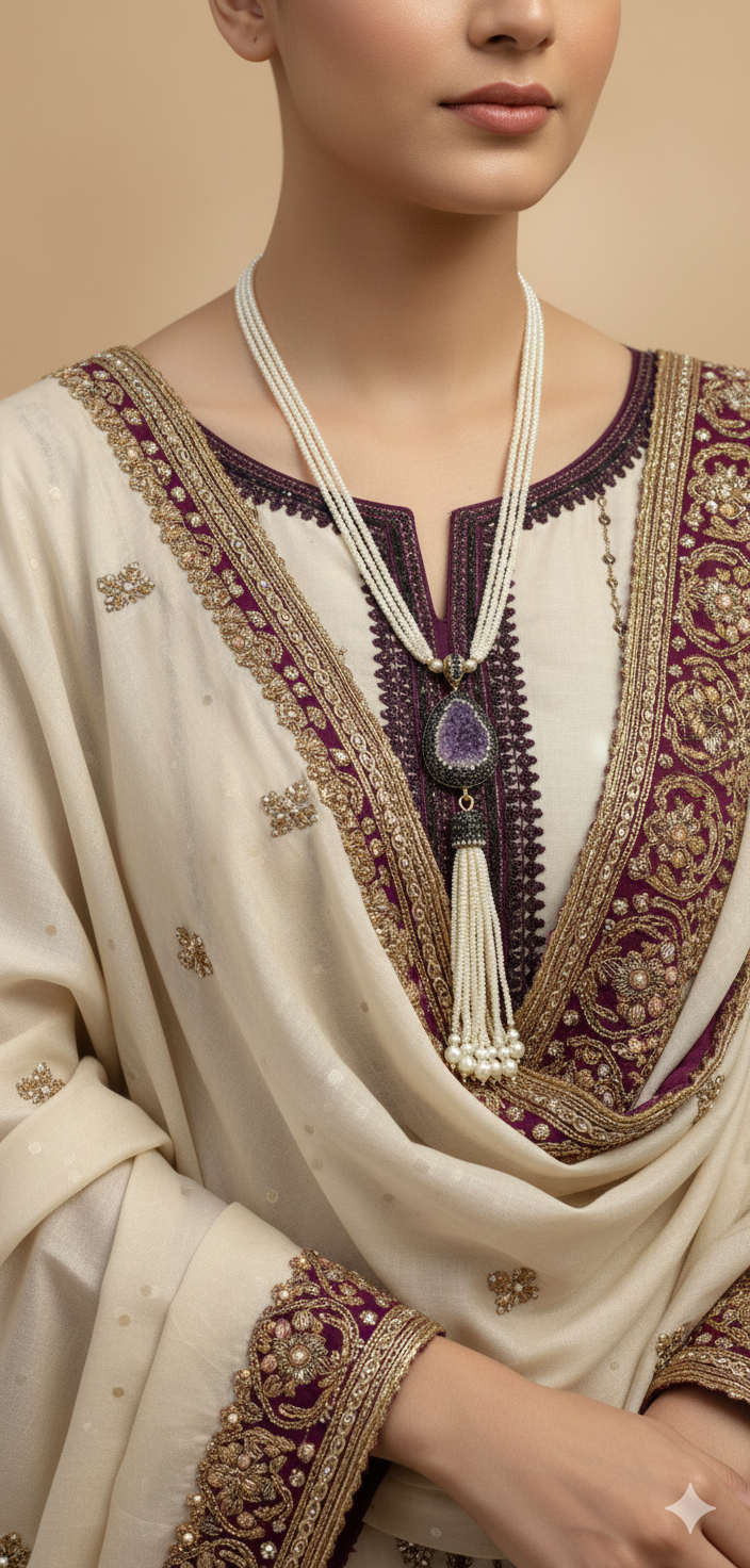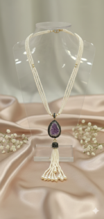 Crafted to make a lasting impression, this elegant Turkish locket/maala blends intricate detailing with a bold yet graceful design. Its finely set stones and luxurious finish create a look that speaks of royalty and refined taste. Perfect for weddings, festive occasions, or elevating your formal attire. This crystal stone in it is one of a kind in the world.