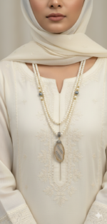 Crafted to make a lasting impression, this elegant Turkish locket/maala blends intricate detailing with a bold yet graceful design. Its finely set stones and luxurious finish create a look that speaks of royalty and refined taste. Perfect for weddings, festive occasions, or elevating your formal attire.