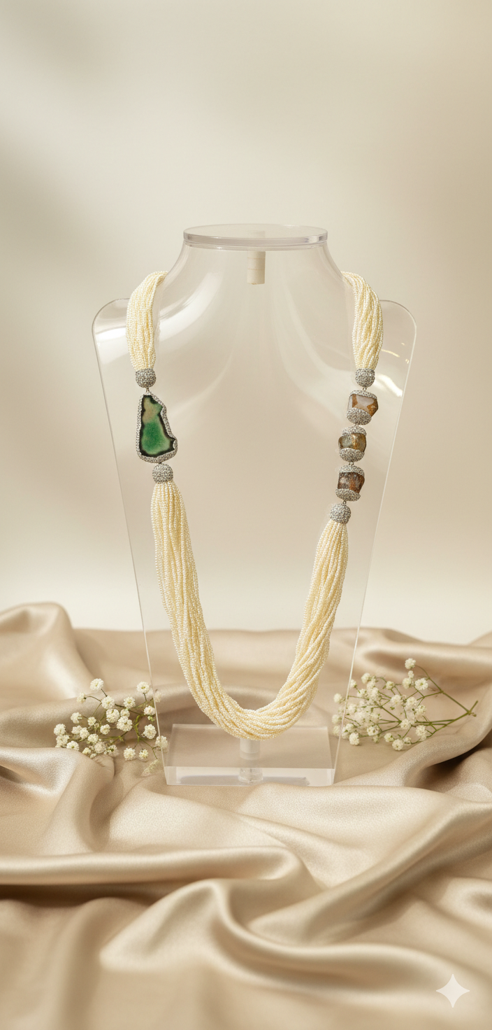 Crafted to make a lasting impression, this elegant Turkish locket/maala blends intricate detailing with a bold yet graceful design. Its finely set stones and luxurious finish create a look that speaks of royalty and refined taste. Perfect for weddings, festive occasions, or elevating your formal attire.